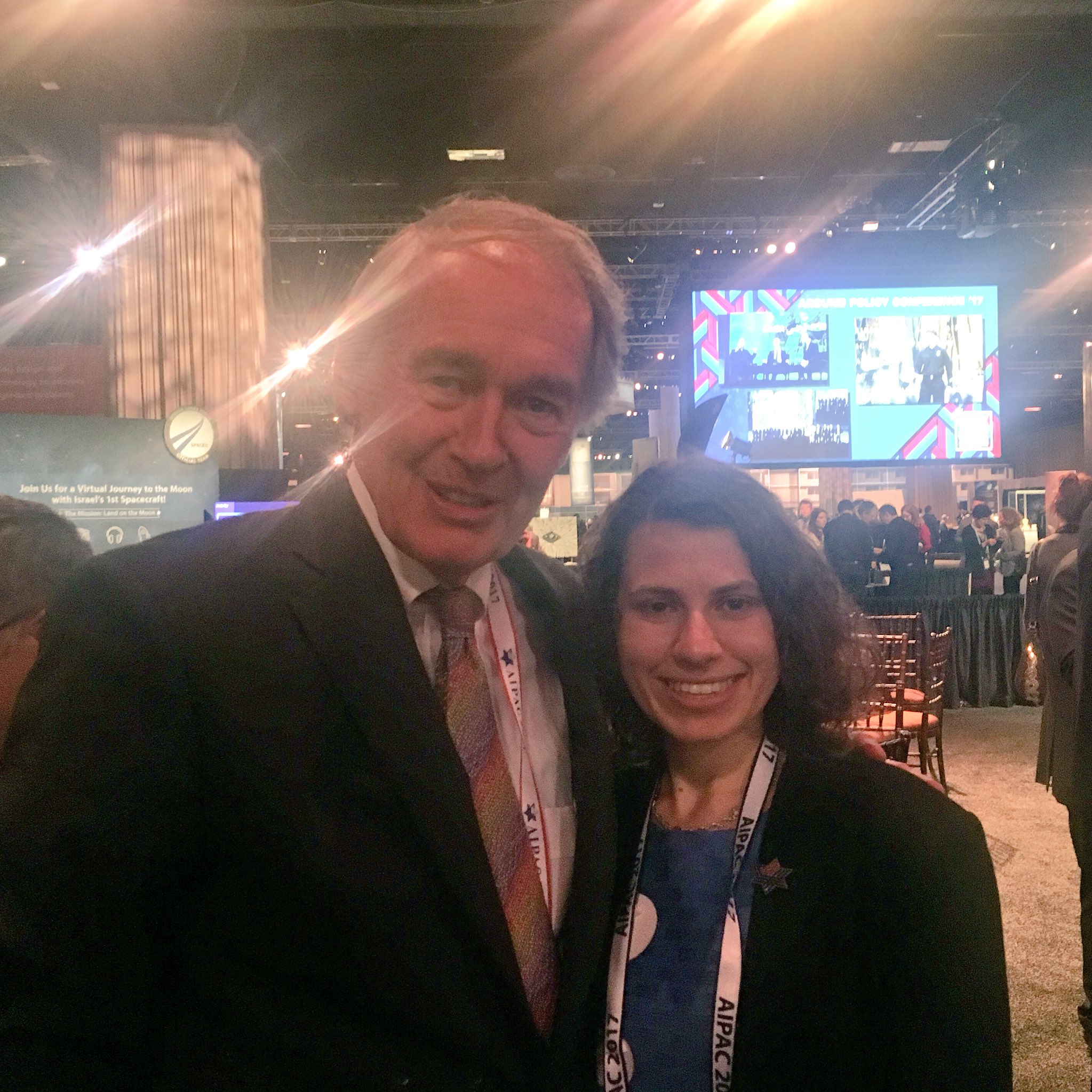 Senator Ed Markey (left) with Sharon Selectwoman Hanna Switlekowski at AIPAC 2017 Conference