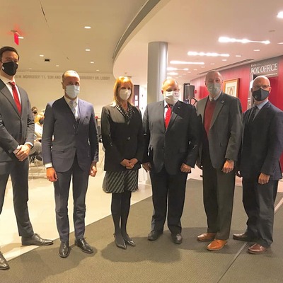 Essex DA Paul Tucker and State Senator Joan Lovely pose with Israeli Consul General Meron Reuben