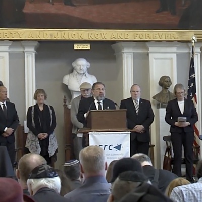 Holocaust commemoration sponsored by JCRC of Greater Boston in Faneuil Hall attended by Boston electeds and Israeli Consul General Meron Reuben
