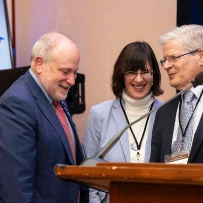 Israeli Consul General Meron Reuben (left) with AJC New England head Robert Leikind (right)