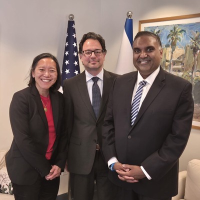 Meeting between CG Benjamin Sharoni, EOED Chief Yvonne Hao, and MOITI Chief Jeevan Ramapriya