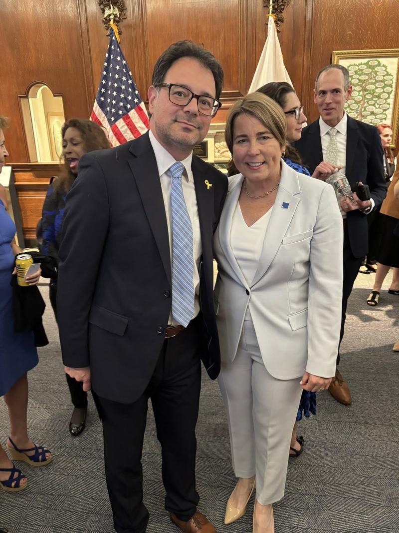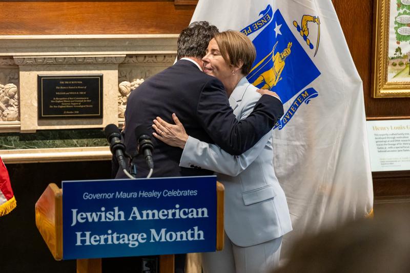 Maura Healey and other top state officials celebrate with Benjamin Sharoni, Consul General of Israel to New England