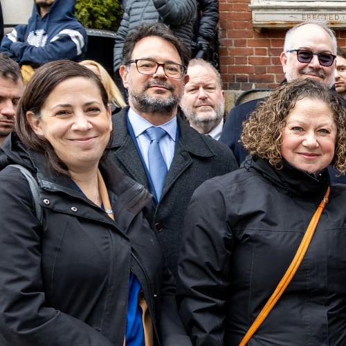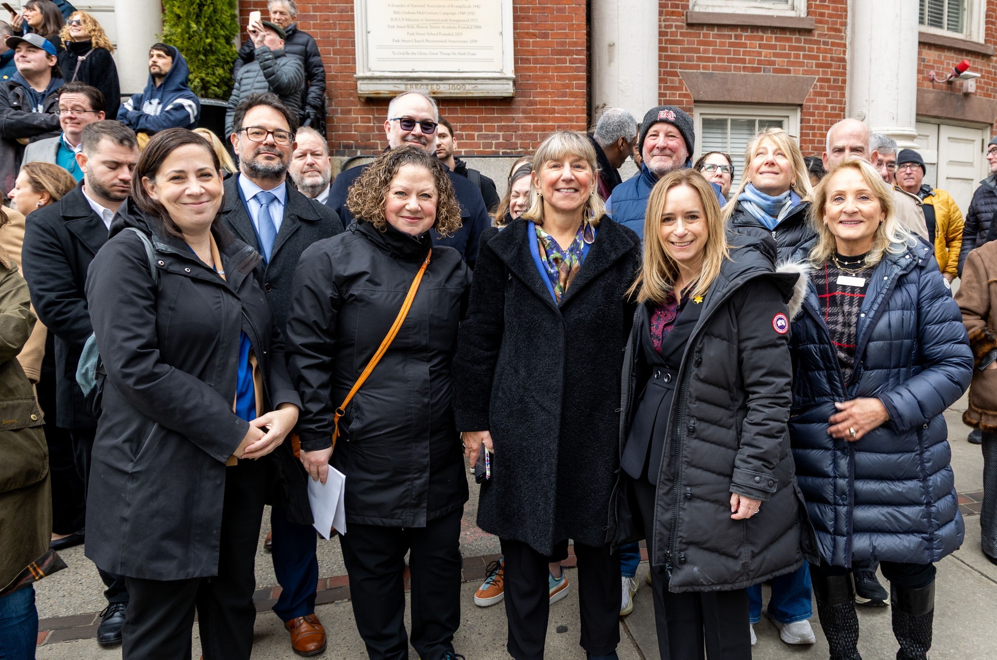 Israeli Consul General Benjamin Sharoni and Massachusetts politicians observed the installation at the future Boston Holocaust Museum