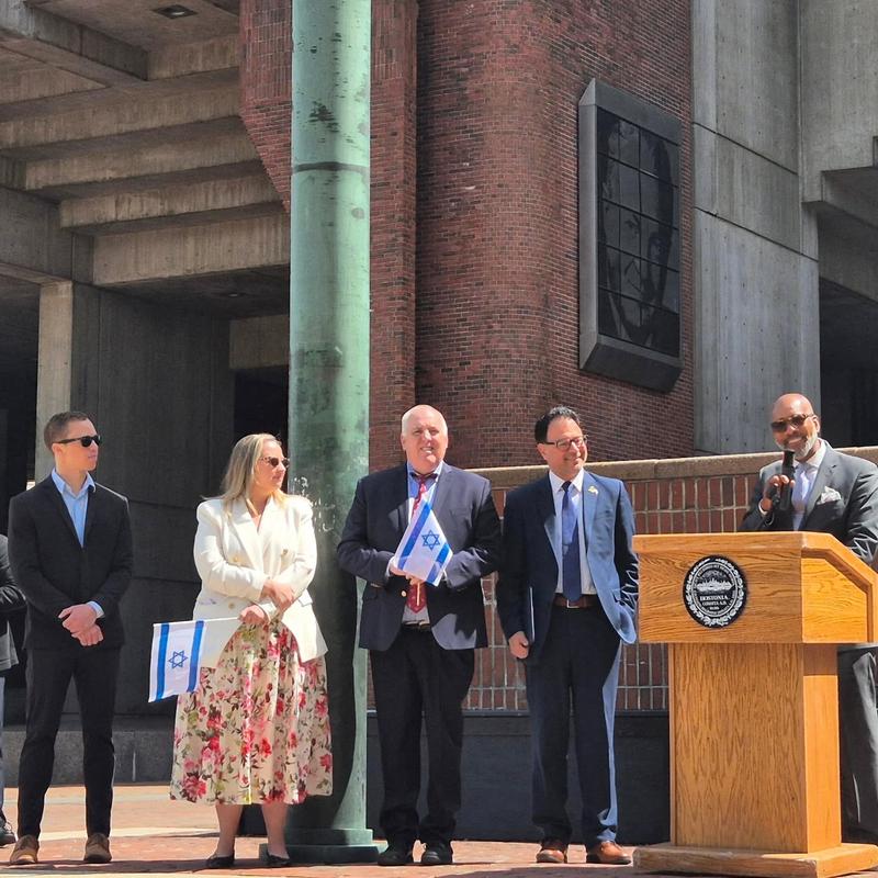 Israeli flag raised at Boston City Hall to celebrate Israel's Day of Independence (Yom Ha'atzmaut) |