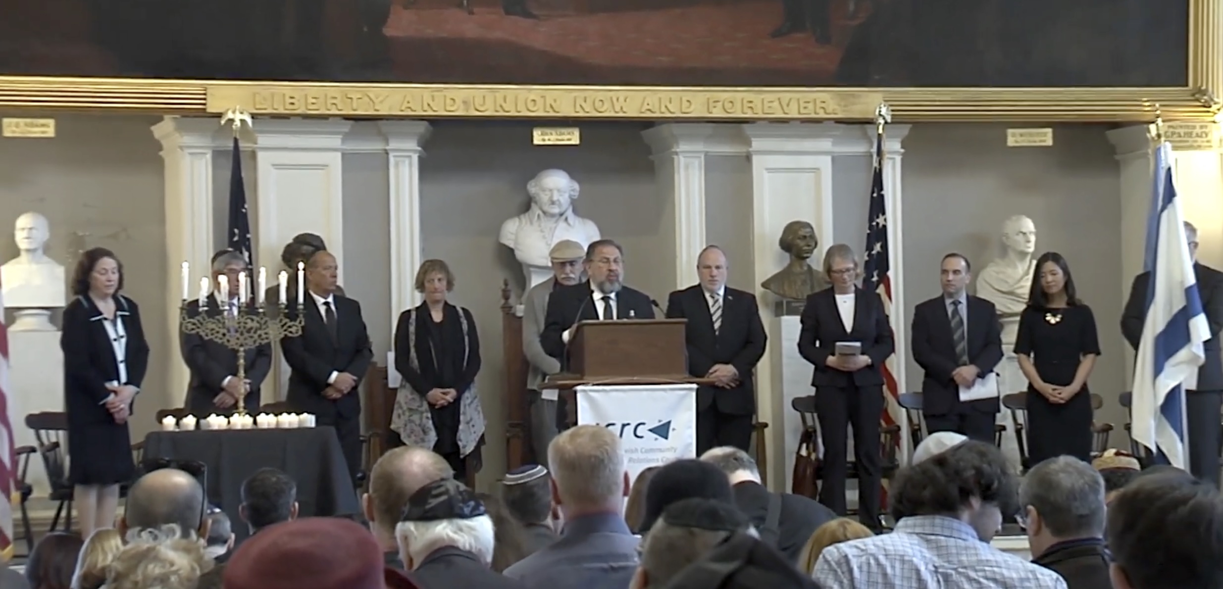 Holocaust commemoration sponsored by JCRC of Greater Boston in Faneuil Hall attended by Boston electeds and Israeli Consul General Meron Reuben |