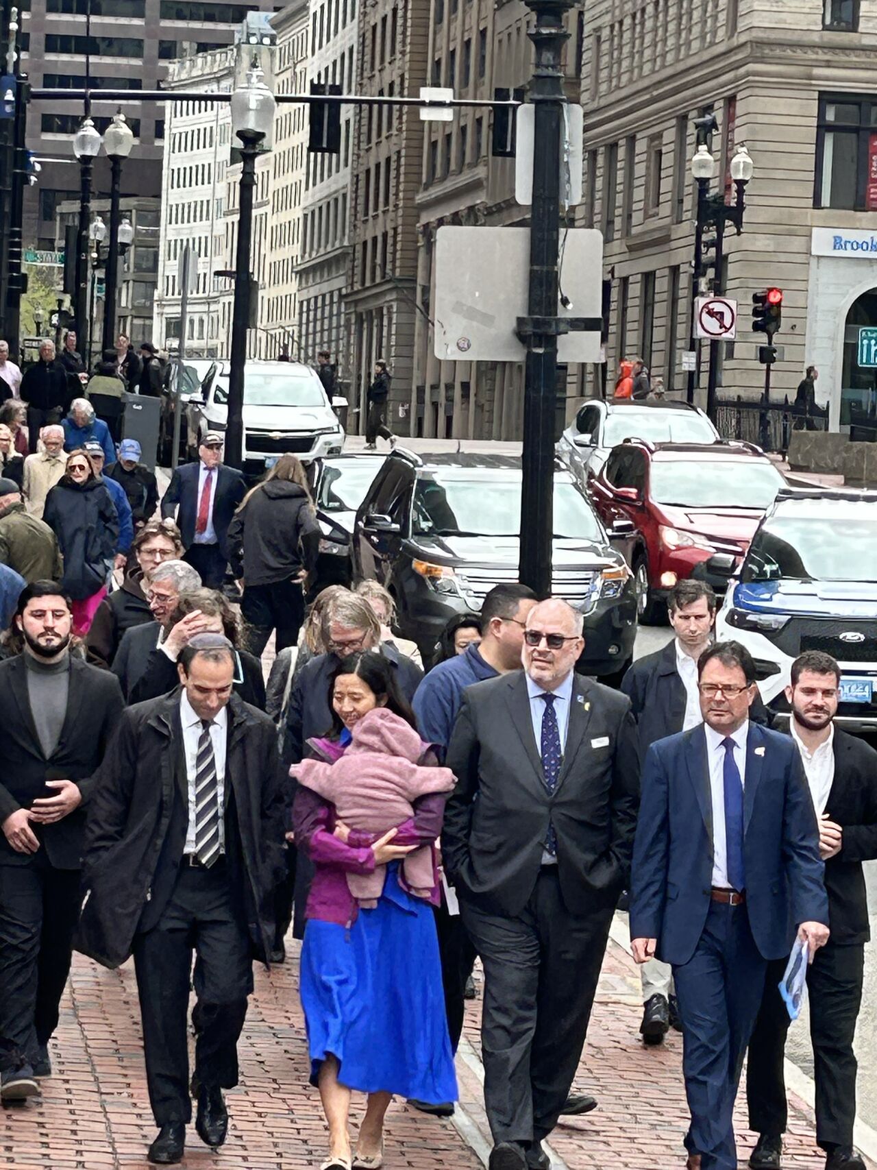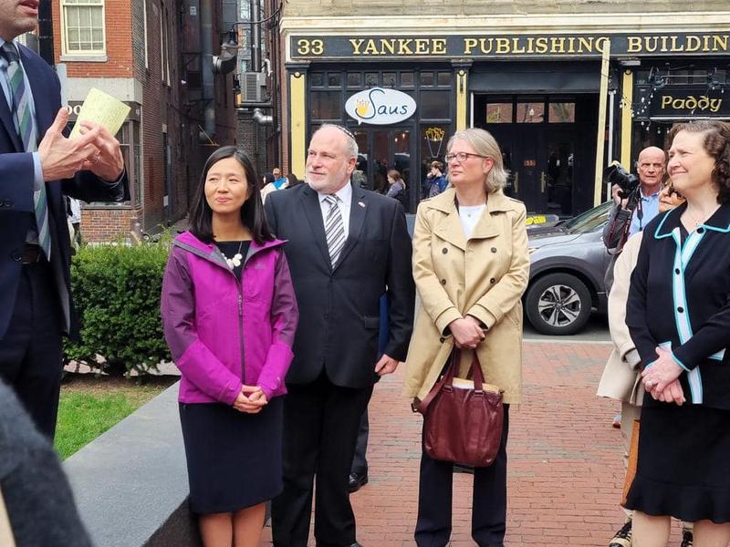 Israeli flag raised at Boston City Hall to celebrate Israel's Day of Independence (Yom Ha'atzmaut) and attended by Mayor Wu |
